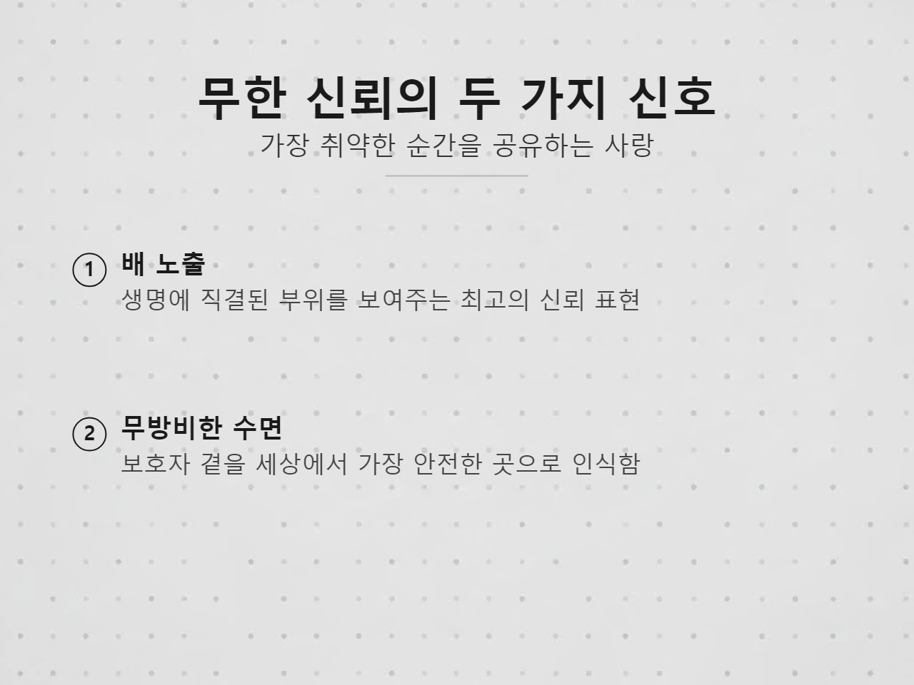 절대적인 신뢰의 상징: 가장 무방비한 상태로 전하는 사랑