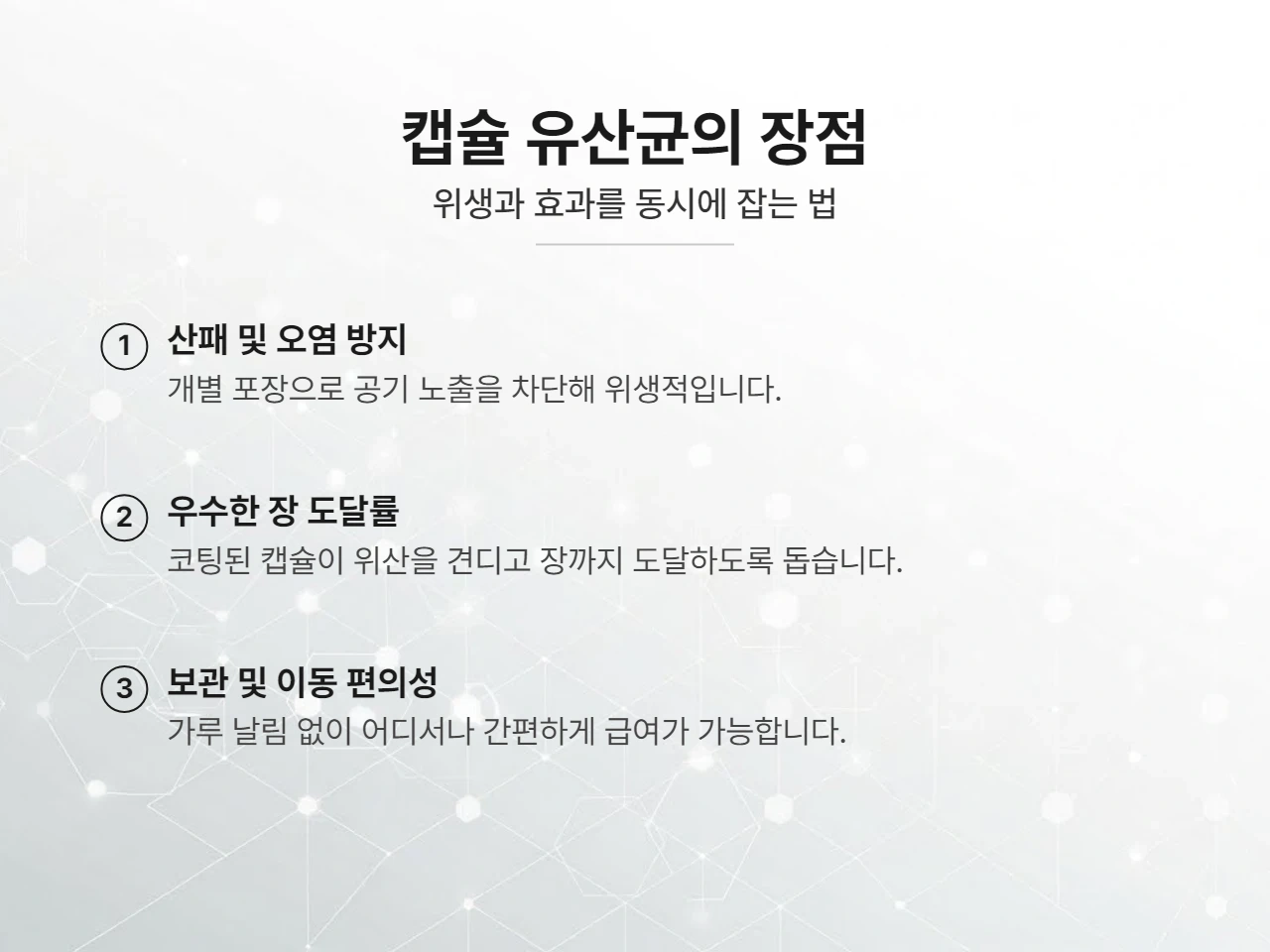 캡슐 유산균의 특징을 간단히 정리해 보았습니다.