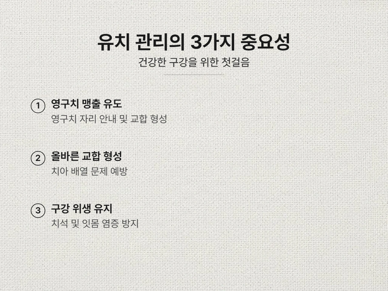 영구치가 건강하게 자리 잡고 잇몸 질환을 예방하기 위해서는 유치 관리법을 제대로 아는 것이 정말 중요해요. 저와 함께 우리 아이의 소중한 유치를 잘 관리하는 방법을 알아볼까요?