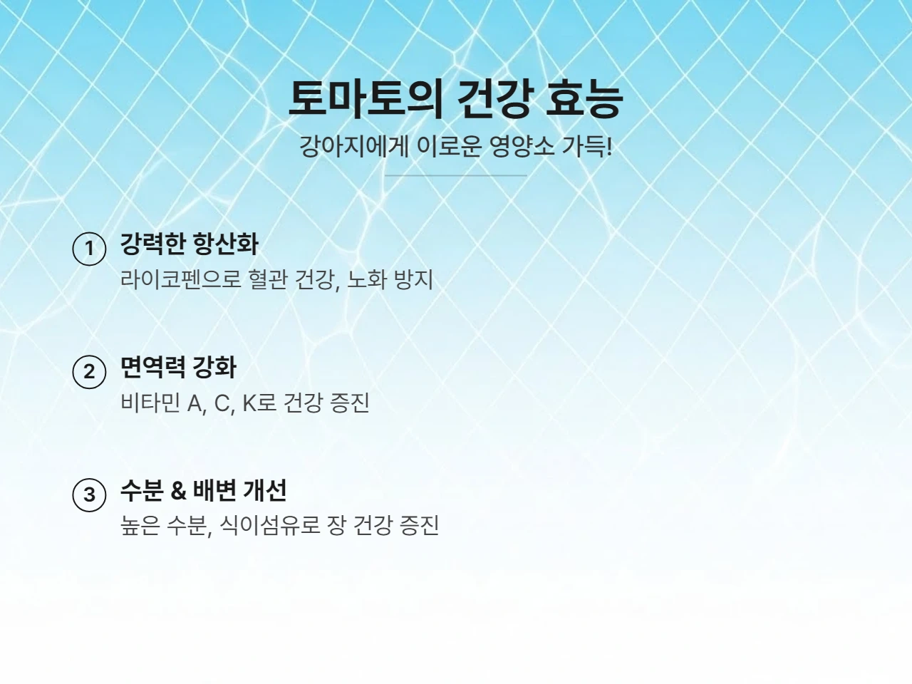 물론 주의사항만 지킨다면 토마토는 우리 강아지에게 정말 좋은 슈퍼푸드가 될 수 있습니다. 저도 이 효능들 때문에 안전하게 급여하는 방법을 더 연구하게 되었어요.