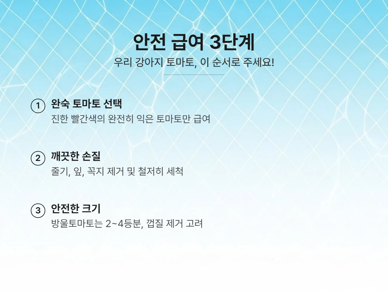 강아지에게 토마토를 주기 전, 몇 가지 중요한 준비 단계가 필요합니다. 이 과정만 잘 지켜도 우리 아이가 건강하게 토마토를 즐길 수 있어요.