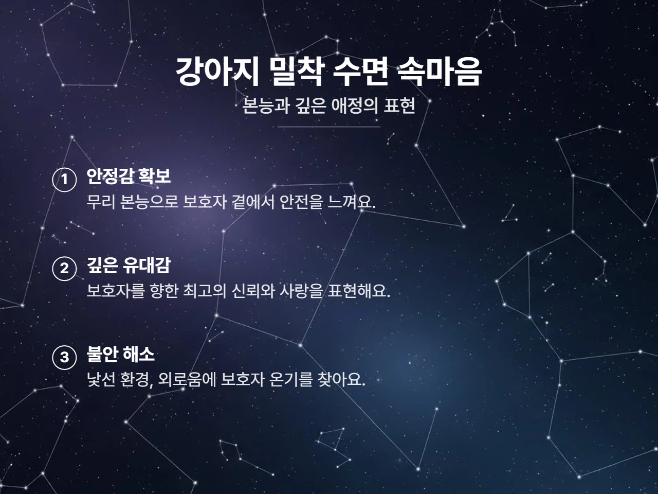우리 강아지가 잠잘 때 보호자 옆에 바싹 붙어 자는 행동은 단순히 체온을 나누기 위함이 아니랍니다. 그 속에는 조상으로부터 물려받은 본능과 보호자를 향한 깊은 신뢰, 그리고 복잡한 감정들이 얽혀 있어요.
