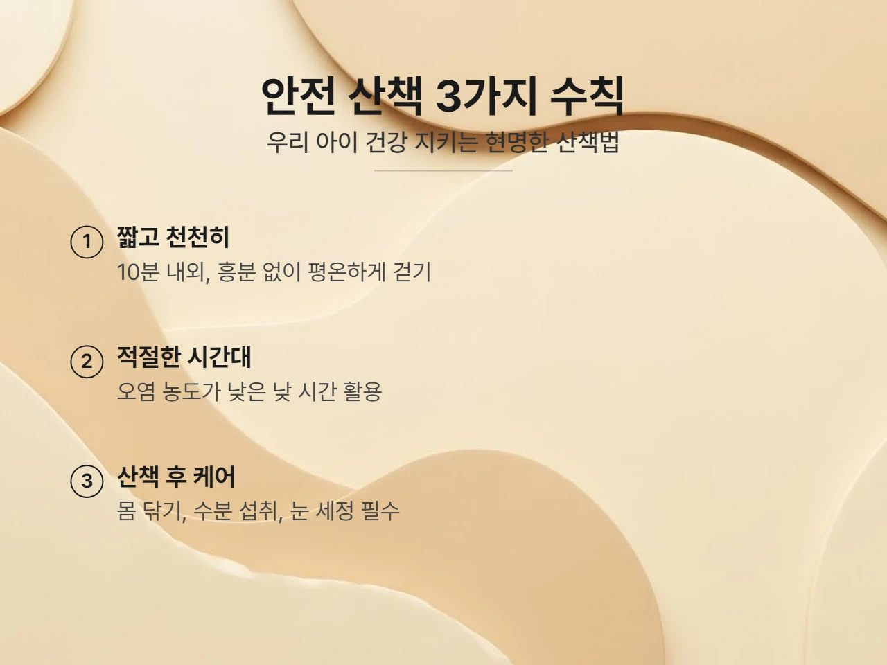 • 산책 시간대 선택: 대기가 정체되어 오염 농도가 높아지는 저녁 시간보다는, 상대적으로 공기 질이 좋은 낮 시간을 활용하는 것이 좋아요.